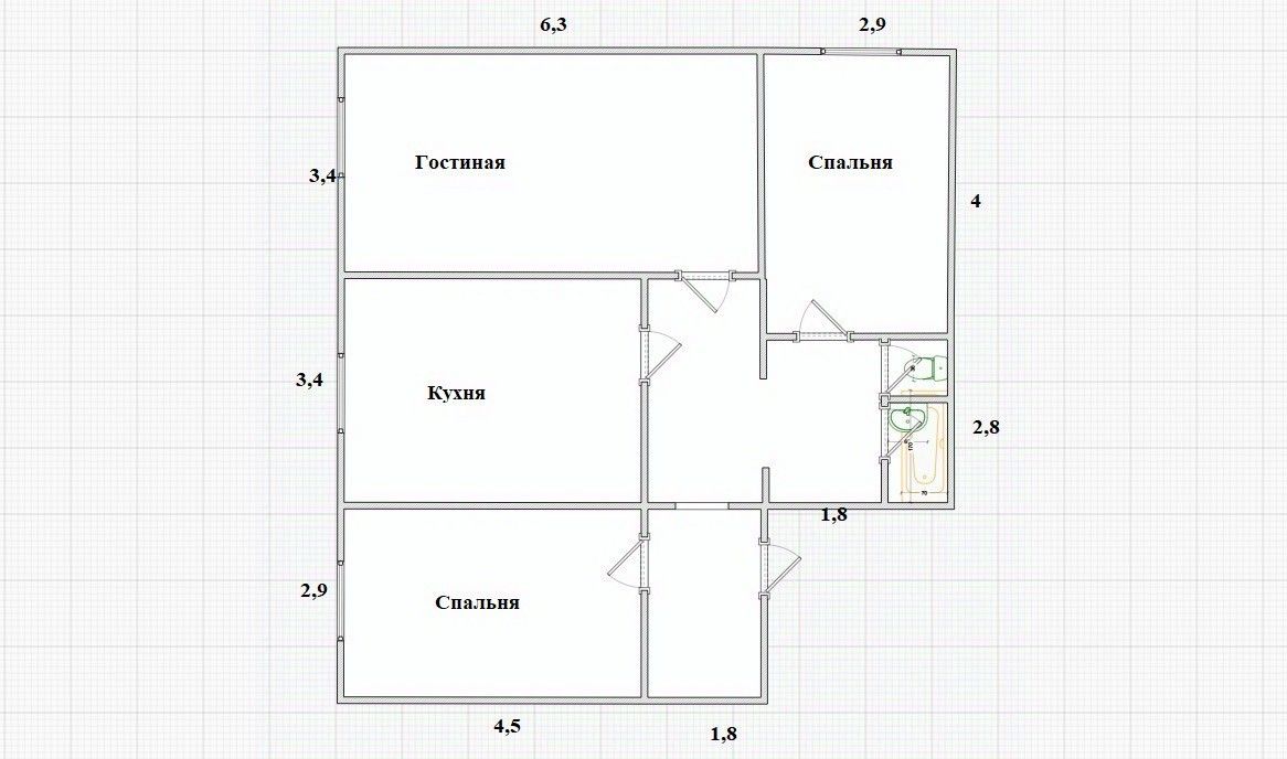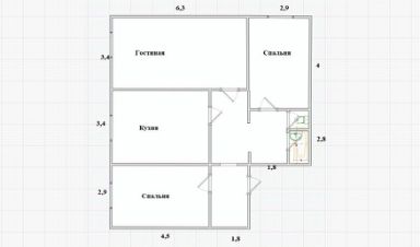 -Изолированные просторные комнаты . Площадь комнат: гостиная 21,5 м кв, спальни -12 м кв и 13 м кв, кухня -15,3 м кв.