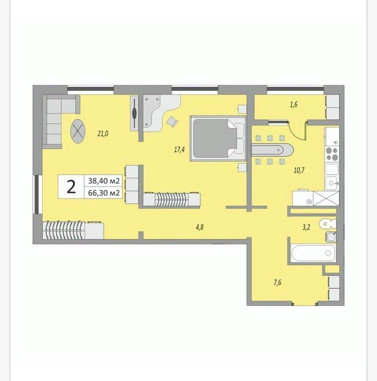 66,4 м²