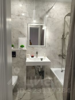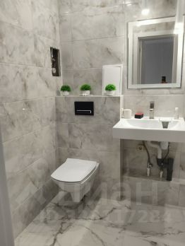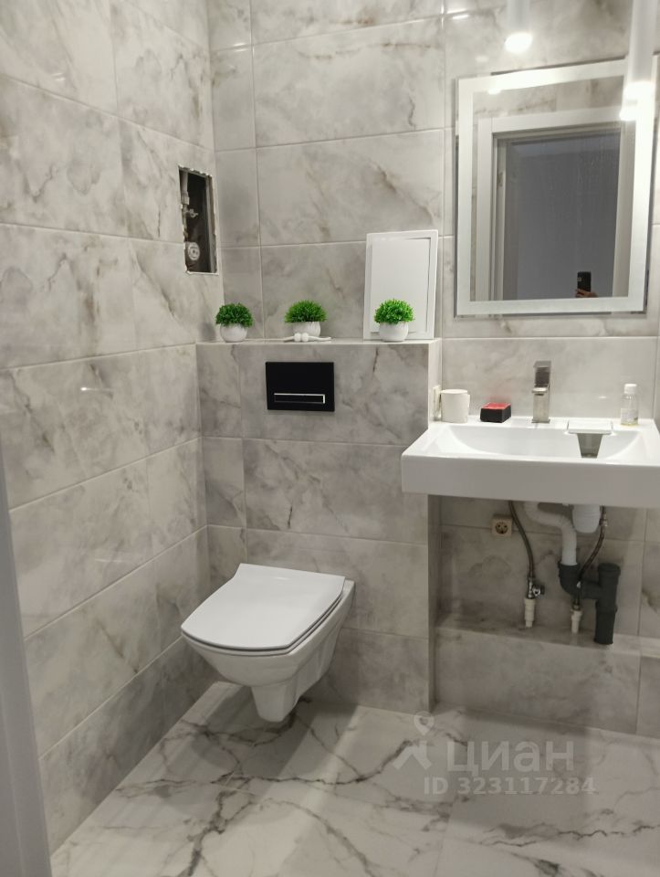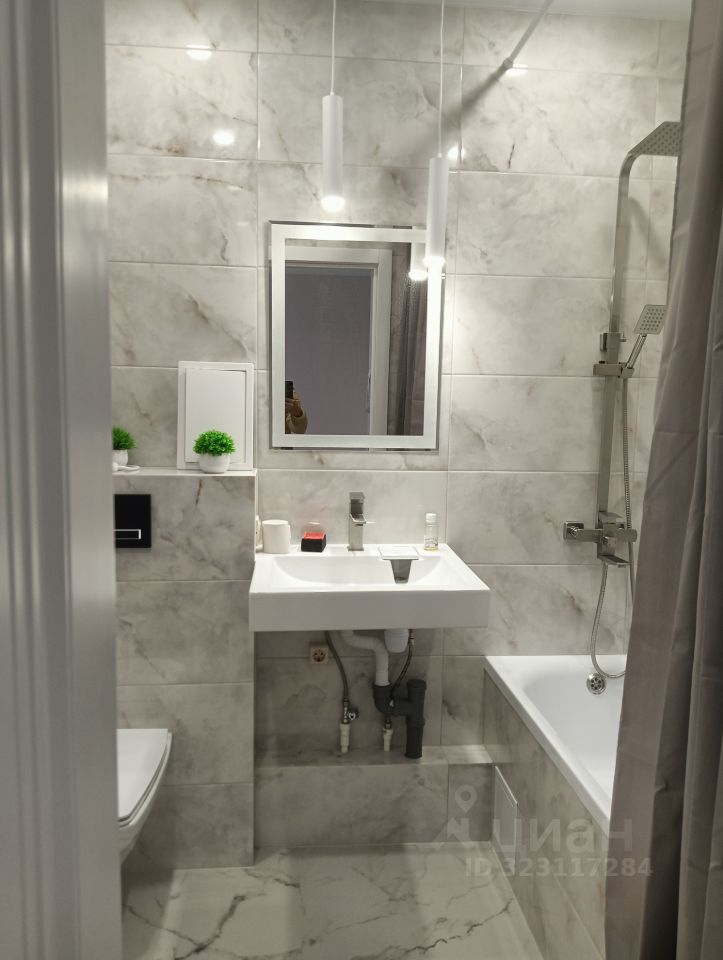 Совмещённый санузел оборудован современной сантехникой, что обеспечивает дополнительное удобство и экономию пространства.