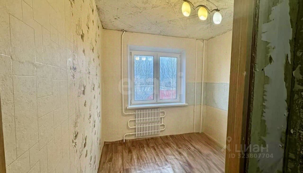 В квартире остается газовая плита, диван, шкаф-купе и кухонный гарнитур, что позволит новым владельцам сразу начать обживать новое пространство. На полу уложен линолеум, который можно легко заменить на более современный материал.
