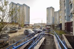 Двухкомнатная квартира общей площадью 56 м² расположена на шестом этаже десятиэтажного дома по адресу ул. Транспортная, 18/3. Планировка характеризуется изолированными комнатами, что создает комфортные условия для проживания. Площадь комнат составляет 18 м² и 14,3 м², кухня — 11,3 м². Из кухни имеется выход на застекленную лоджию площадью 4 м². Окна выходят во двор на детскую площадку, обеспечивая спокойную обстановку и хорошее естественное освещение. В квартире выполнен косметический ремонт: стены в прихожей и на кухне выровнены под покраску, уложено напольное покрытие — ламинат, установлены пластиковые окна с двойным стеклопакетом. Санузел совмещенный, все коммуникации центральные.