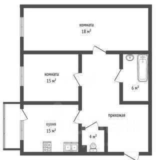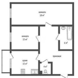 • Планировка: Просторная кухня (15 кв.м.) — идеальное место для семейных обедов. Две изолированные комнаты (15 кв.м. и 18 кв.м.). Раздельный санузел.