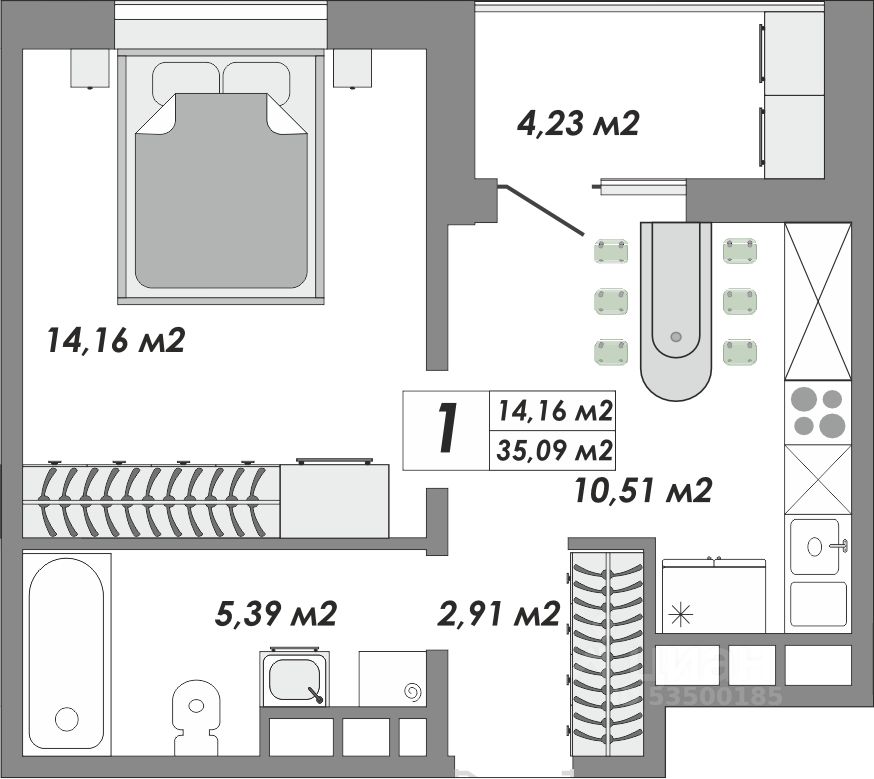 Продаётся 1-комнатная квартира в строящемся доме (Блок-секция 1/1), срок сдачи: IV-кв. 2026, общей площадью 35.09 кв.м., на 14 этаже. Новый жилой комплекс "Долгие горы" от застройщика "ГК Лист" расположен по адресу Россия, город Оренбург, Южный округ, Ленинский район, улица Гаранькина.