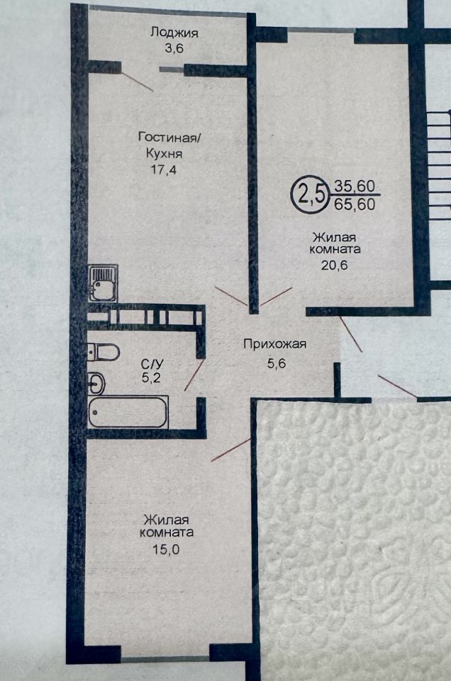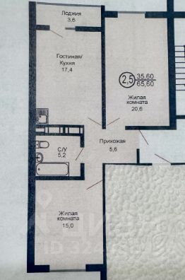 Общая площадь: 65,6 кВ.м.