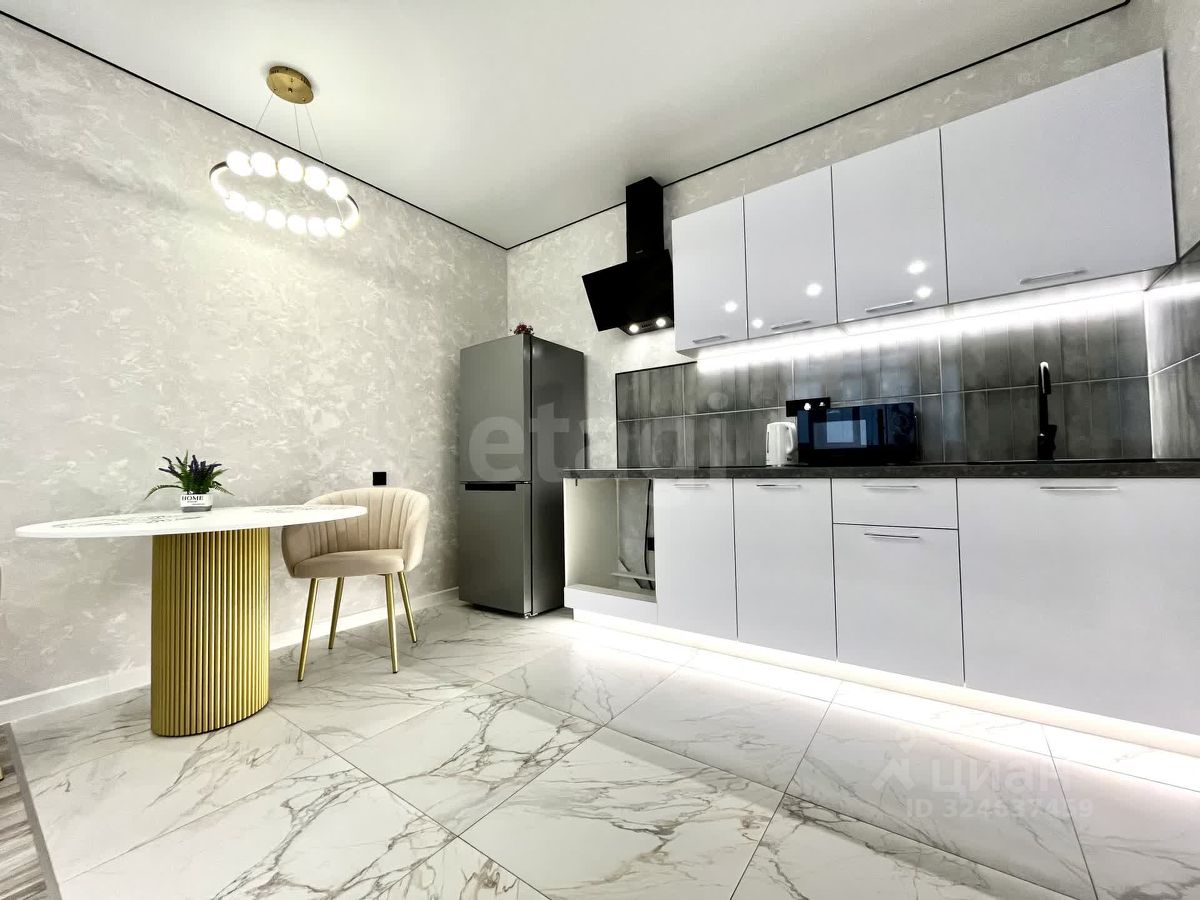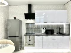 -В квартире вас ожидает уютная кухня-гостиная площадью 21,44 кв.м. с эркерным окном , оборудована кухонным гарнитуром с доводчиками, холодильником, варочной поверхностью, гарантируя удобство и функциональность.