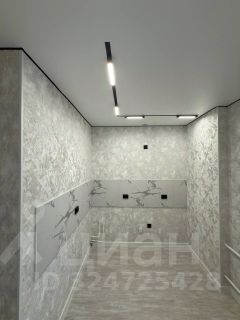 Потолок:натяжной с точечным освещением — создаёт уютную атмосферу и позволяет зонировать пространство.