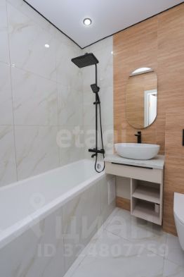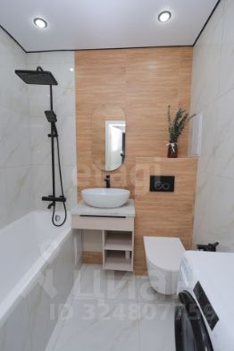Совмещенный санузел оснащен современной сантехникой, включая вместительную ванну.