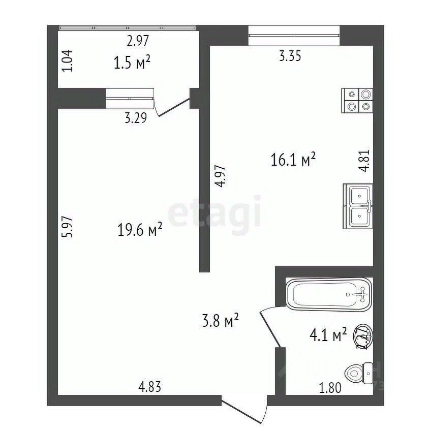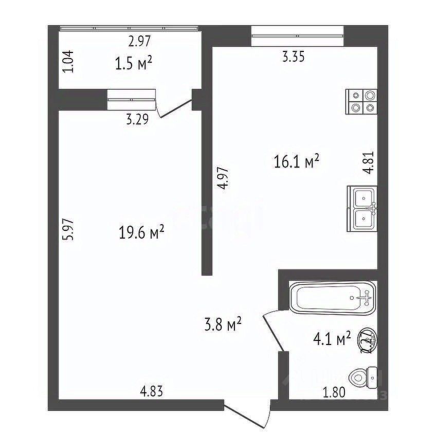 В продаже 1-комнатная квартира площадью 45,36 кв.м.: гостиная (19,6 кв.м) и кухня (16 кв.м) в новом доме комфорт класса. Площадь кухни позволяет обустроить в ней кухню-гостиную со столовой зоной и зоной для комфортного отдыха на диване за беседой с друзьями или просмотром любимого фильма.