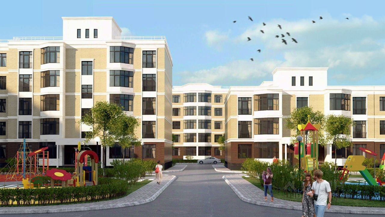 Первая очередь строительства жилого района "Гранд парк" включает в себя пять трехэтажных и четыре - пятиэтажных кирпичных дома.