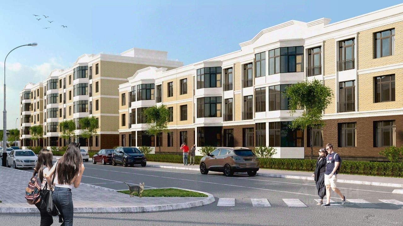 Первая очередь строительства жилого района "Гранд парк" включает в себя пять трехэтажных и четыре - пятиэтажных кирпичных дома.