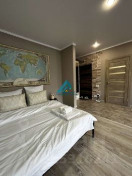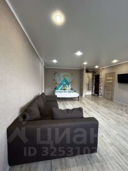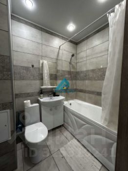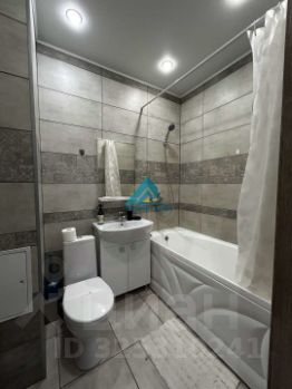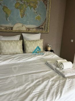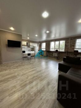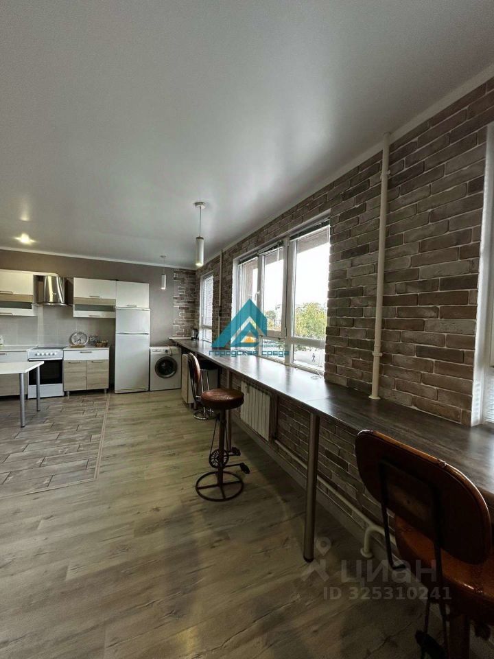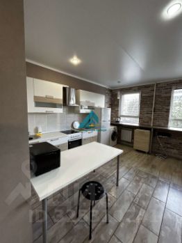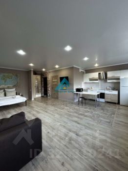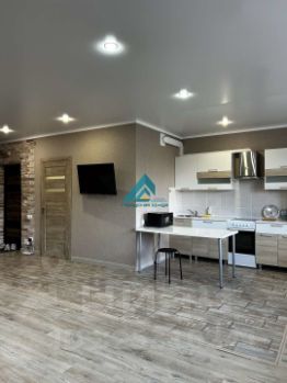 Просторная комната совмещена с кухней, что создает ощущение единого открытого пространства. Кухня оборудована всей необходимой техникой, включая холодильник и стиральную машину. В санузле установлена современная сантехника и качественная плитка.