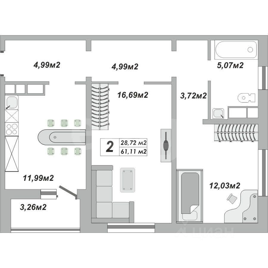 61.11 м² | 1 этаж из 17
