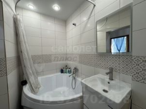 Современный санузел: Совмещенный санузел облицован стильным кафелем, что добавляет уюта и практичности.