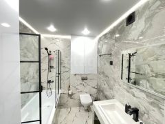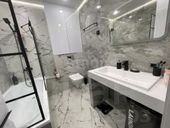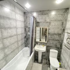 Ванная комната облицована новой керамической плиткой, что обеспечивает дополнительный комфорт в холодное время года.