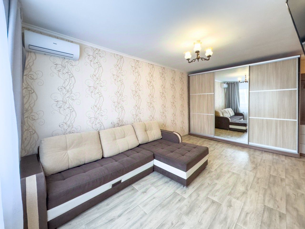 * Вечер проходит в комфорте: светлая и тёплая квартира с косметическим ремонтом. Большой диван легко превращается в двуспальную кровать, а все вещи удобно хранятся в шкафу-купе.
