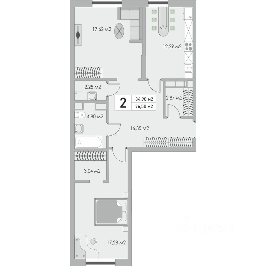 количество комнат: 2;