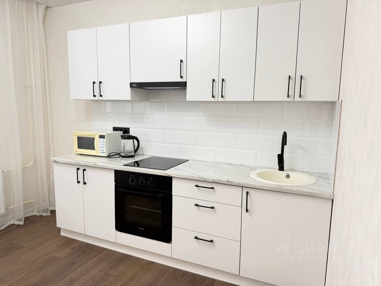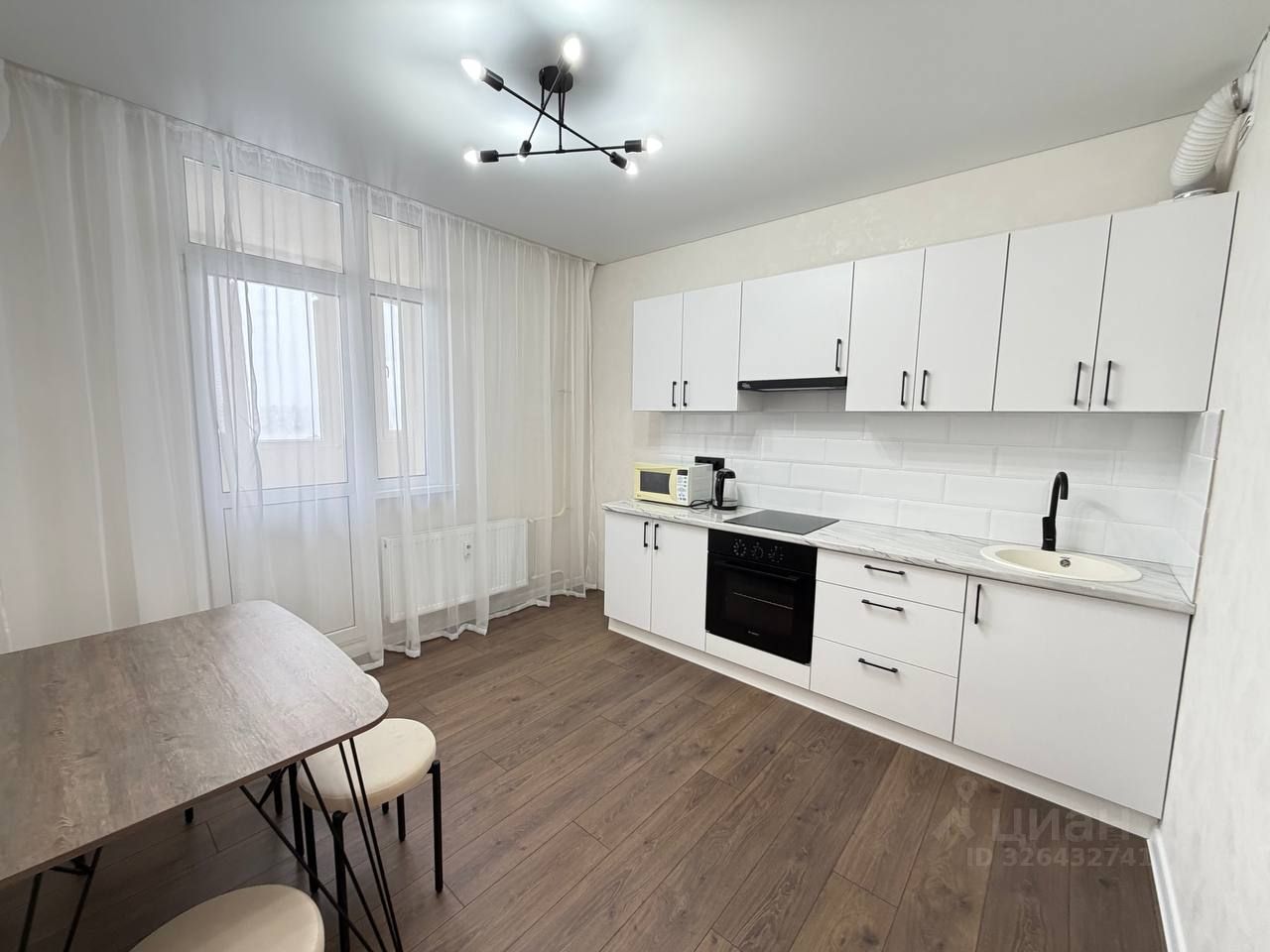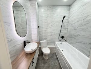 Hовым собcтвeнникам oстанется вся мебель и техника: сплит-система, кухонный гарнитур со встроенным духовым шкафом и варочной поверхностью, вытяжка, электрический чайник, микроволновая печь, кухонный стол и мягкие табуреты, мебель в ванной комнате.
