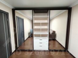 -Вместительная система хранения: Во всю стену в комнате построен стильный шкаф-купе с зеркальными фасадами, который зрительно увеличивает пространство и решает вопрос хранения для всей семьи.