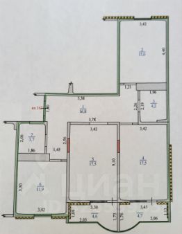 Площадь квартиры по ЕГРН составляет 86,6 кв.м, 2 застекленные лоджии по 4,7 кв.м с выходом из гостиной и спальни. Все комнаты изолированные, выходят в просторный коридор 16кв.м.