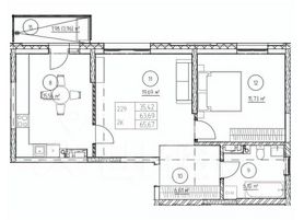 В продаже двухкомнатная квартира, S - 66 м.кв.