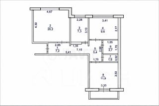 Удобная планировка: три комнаты, кухня 7 м², просторный балкон 3,35 м².