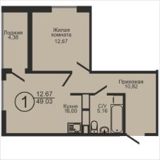 Продается 1-комн. квартира, 49,03 м²