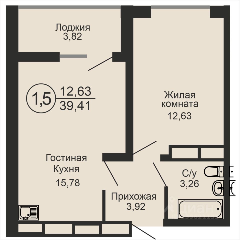 Общая площадь39,41 м²