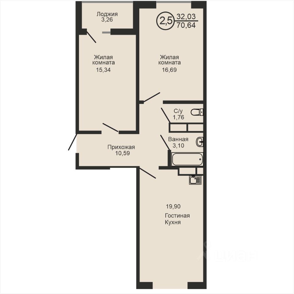 Общая площадь70,64 м²