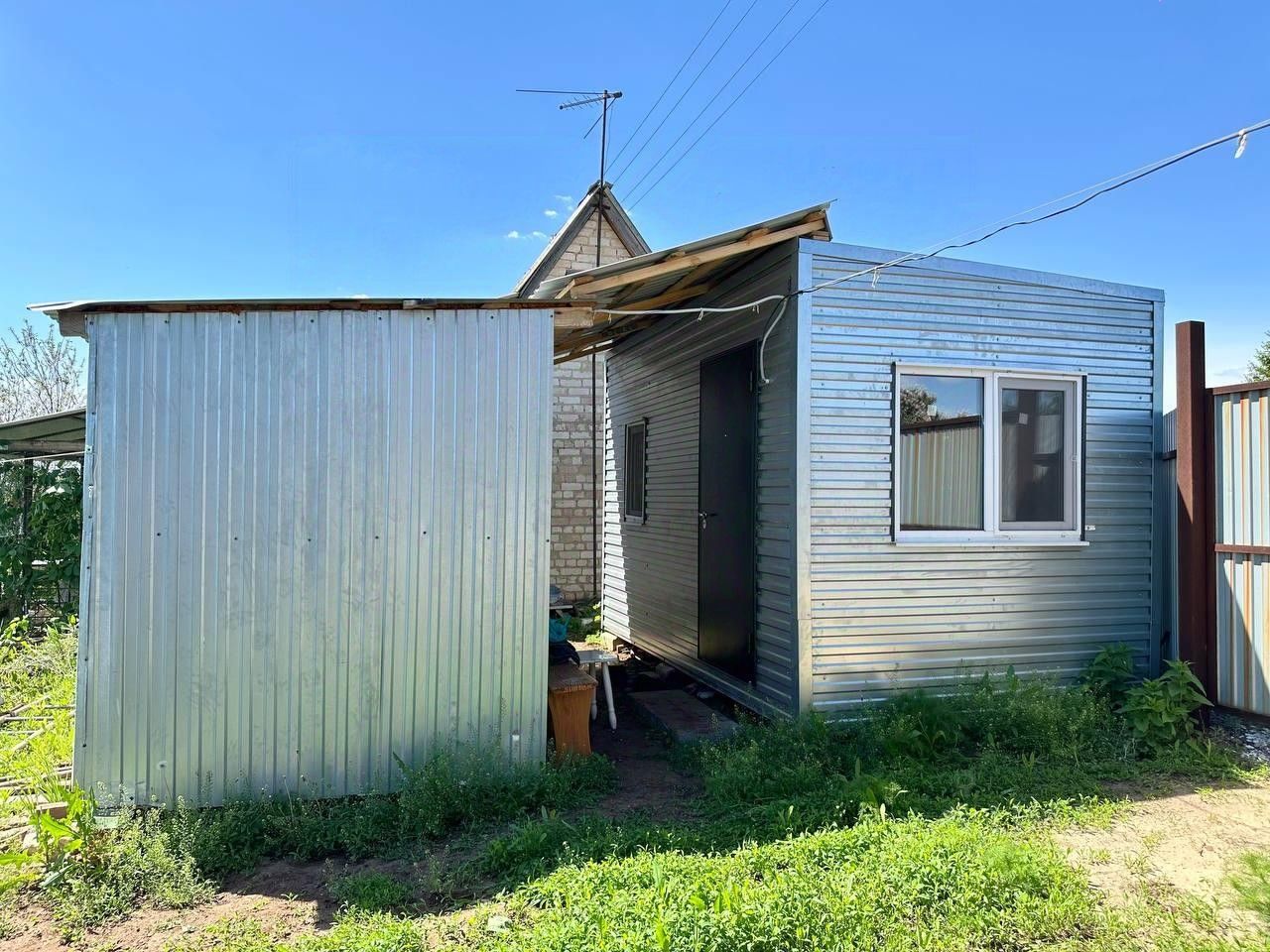 На территории участка имеется: летний домик с навесом, в который заведен свет/вода, установлены пластиковые окна, имеется ванна; два бокса оборудованные (1. жилое, 2. мастерскую); крытый дровник.