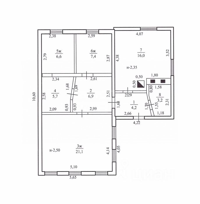 Дом площадью 71,1 кв.м. , в дoме 3 комнаты: просторная гостинная 21.1 кв.м., две спальные комнаты - 12.3 и 7.4 кв.м., кухня 16 кв.м. и cан.узeл - 3.2 кв.м.