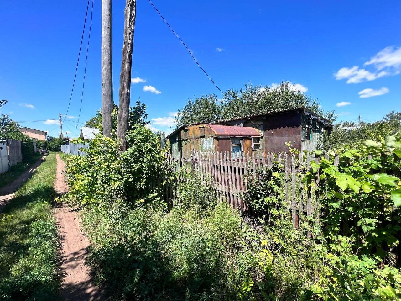 На участке стоит вагончик 20 кв.м. для летнего проживания.
