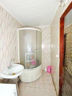 Санузел с душевой кабиной, совмещенный, в доме.