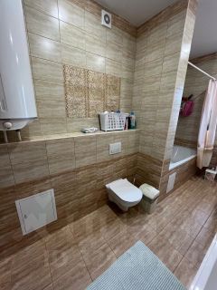 Санузел в современном кафеле.