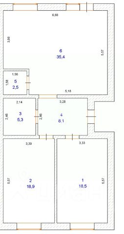 Отличная планировка: 2 спальни, холл, кухня-гостиная, большой СУ, гардеробная