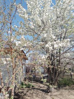 На участке парковочное место,есть сад с яблоками,грушей ,абрикосом и виноградом.