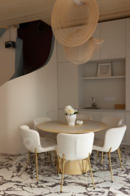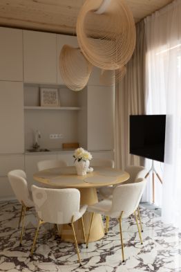 Система кондиционирования LG с очисткой воздуха в каждом комнате, водный теплый пол по всей площади, немецкие вертикальные радиаторы и напольные конвекторы, межкомнатные итальянские двери 2,5 метра, сантехника villeroy-boch, корпусная мебель на заказ и зеркальные стены. Потолок выполнен из натурального дерева, пол паркетная доска и итальянская плитка за 10000р за метр. Данный ремонт обошелся более чем 9 млн, по рынку выйдет больше 12 млн.