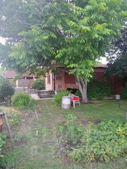 На участке сосновый сруб в две комнаты, обложенный кирпичом ( в жару в нём сильно прохладно, даже холодно!)