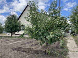 Участок - можно засажен плодовыми деревьями и цветами.