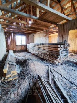 Дом построен из 150-го бруса. Брус скреплен скобами. Залит хороший фундамент. Внутри дома остались стройматериалы для дальнейшего строительства.