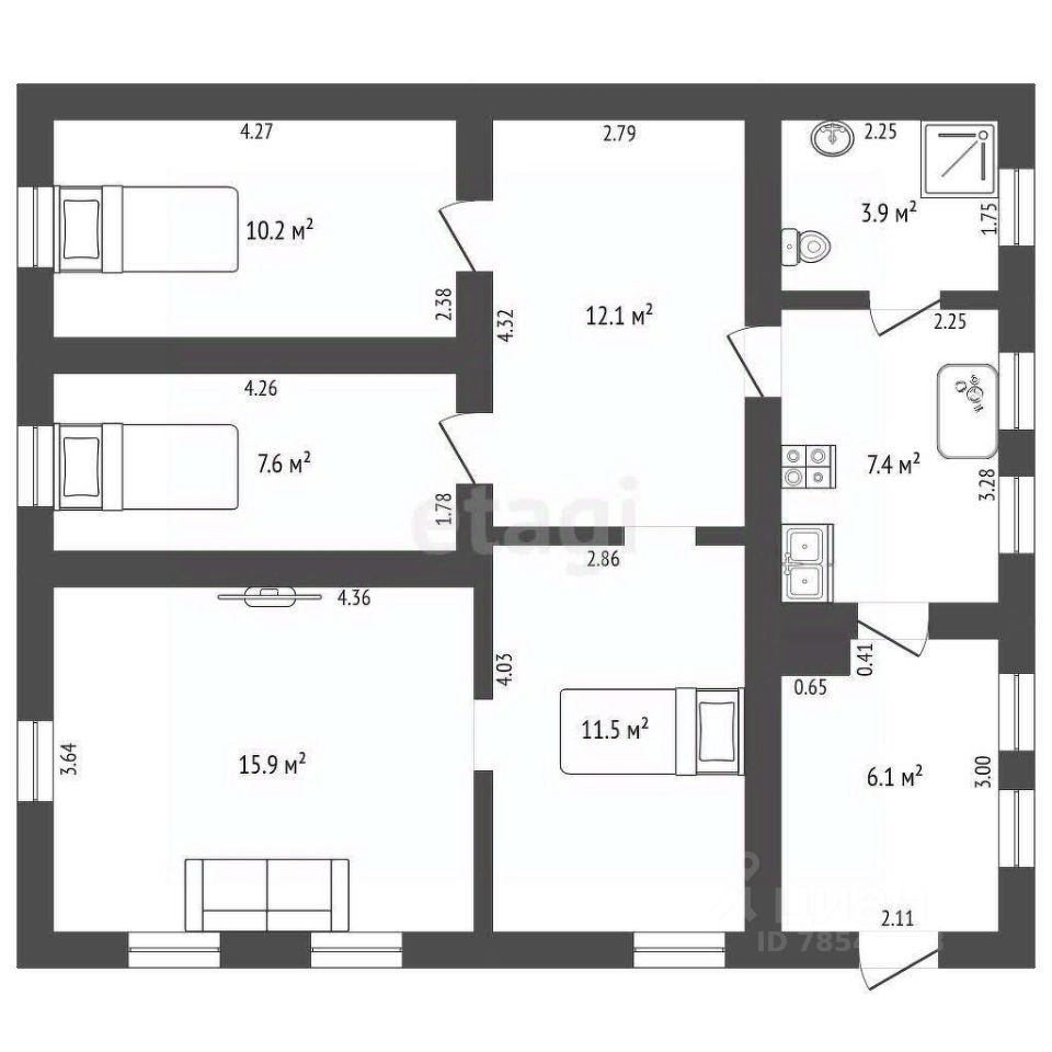 Три спальни,зал и кухня.