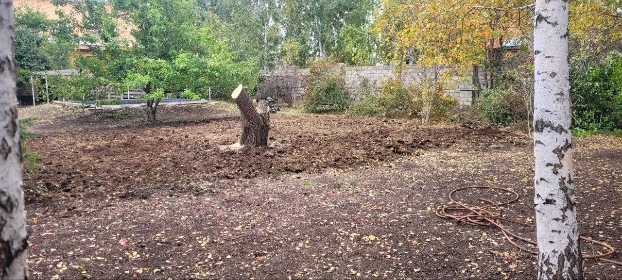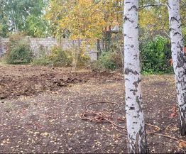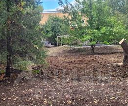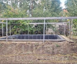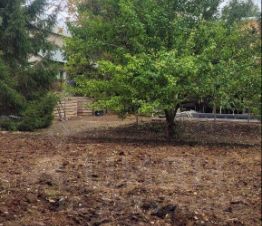 Просторный участок с деревьями, забором асфальтированным подъездом , бассейном а также хозяйством.