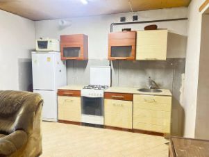 К дому примыкает большой гараж, в котором есть раковина, унитаз, котельная и большая смотровая яма. Отопление в доме обеспечивается напольным котлом, а горячая вода - колонкой.