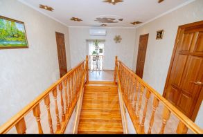 Роскошная лестница, из натурального дерева, ведет на второй этаж, где расположены 2 просторные спальни, кабинет, хоз. комната, су.