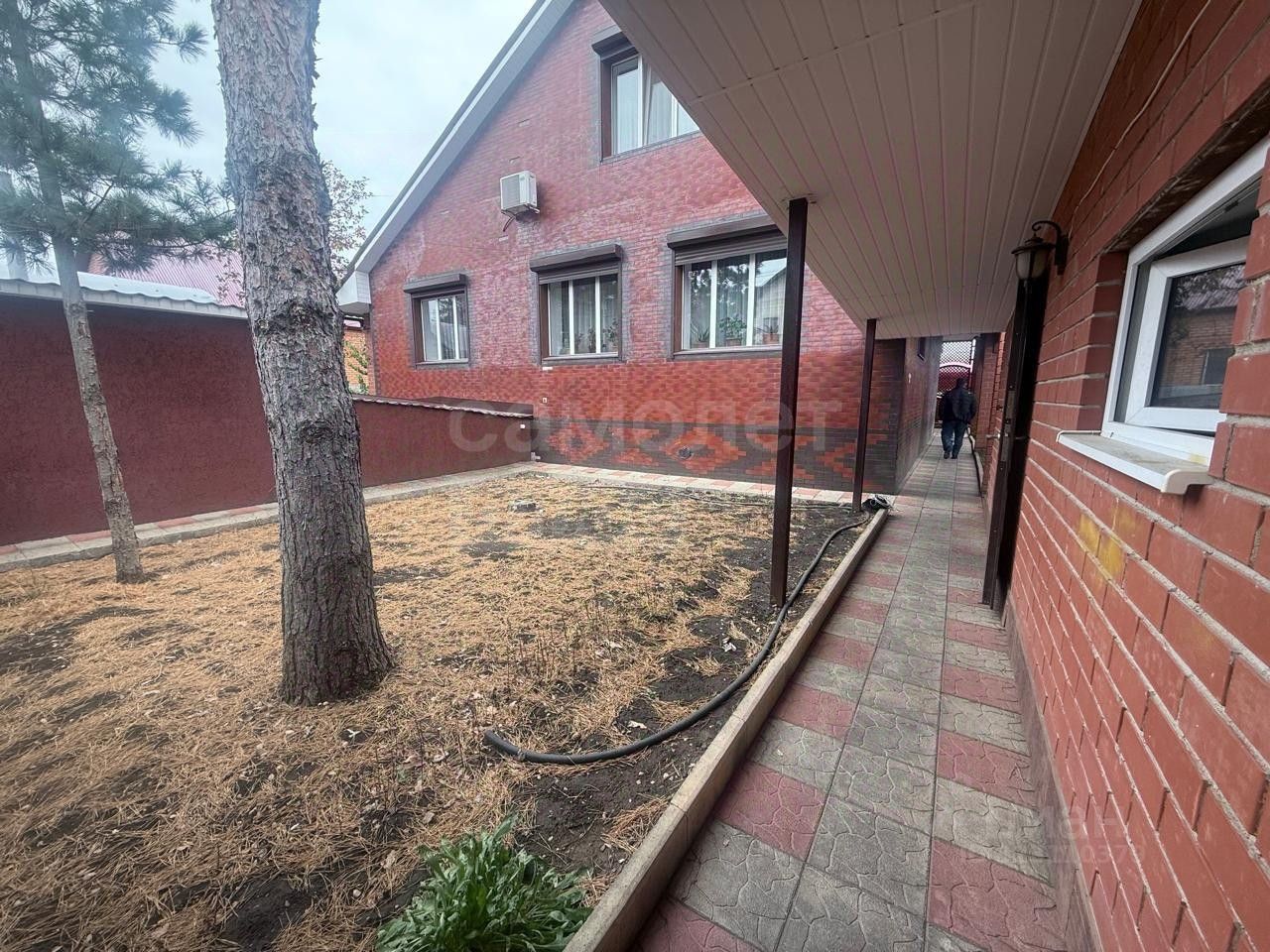 Забор: кирпичная кладка. Закрытая территория обеспечивает безопасность и приватность, дополняется открытой территорией для различных активностей.