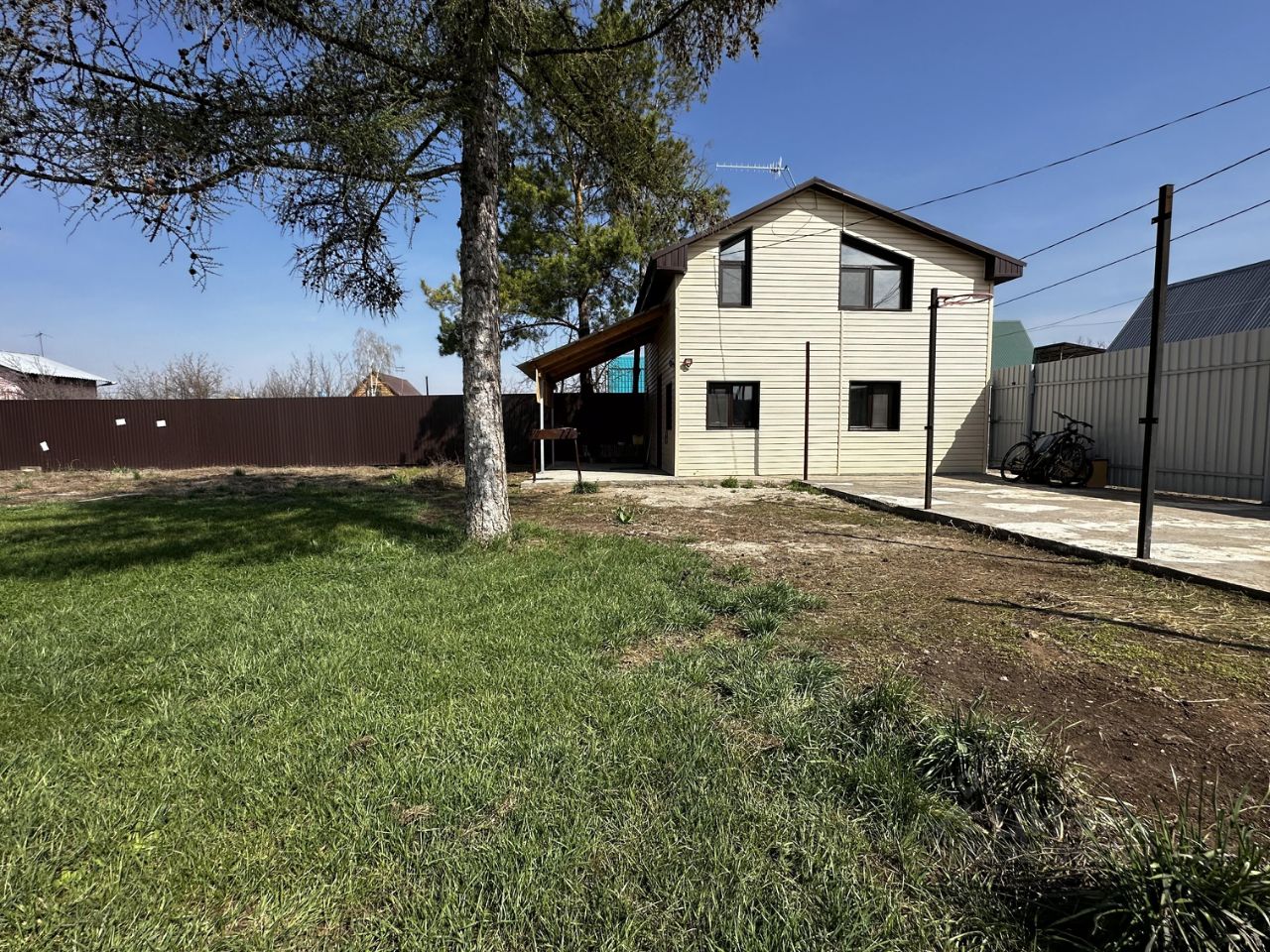 УЧАСТОК 5 соток, ровный, без зарослей, с забетонированным заездом на 2 авто, столбами под навес и площадкой под большой бассейн. Огорожен новым забором лицевой стороной внутрь.