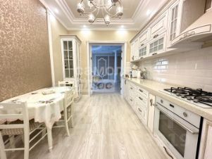 - уютная кухня с современной техникой и качественной мебелью
