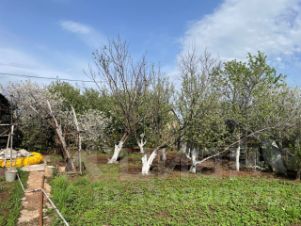 • На участке множество плодовых деревьев, кустарников: несколько яблонь, много сортов винограда, малина, крыжовник, клубника, облепила, абрикос, вишня, слива и др.