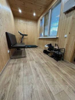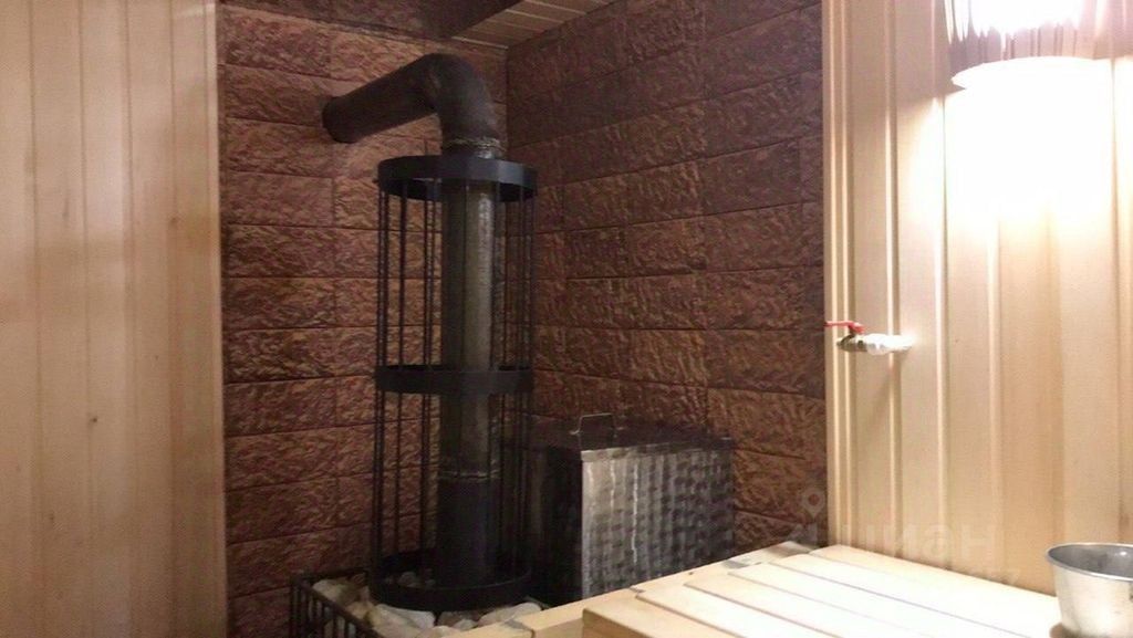 - Баня на дровах: внутри обшита вагонкой из липы — экологично, приятна на ощупь, идеально подходит для парилки.