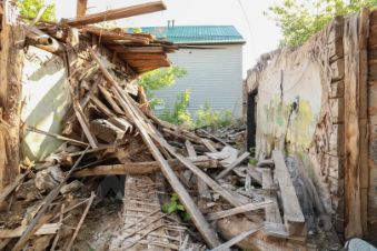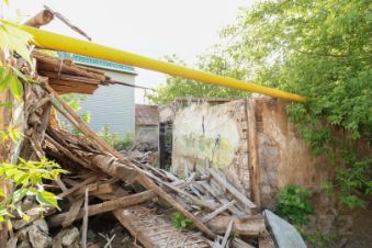 На участке есть два старых дома: один разрушенный из бруса, его можно использовать в качестве строительного материала, другой жилой, в нем проведено и функционирует электричество, вода, газ. Также на участке имеются бетонные плиты перекрытия, которые тоже остаются в качестве строительного материала.