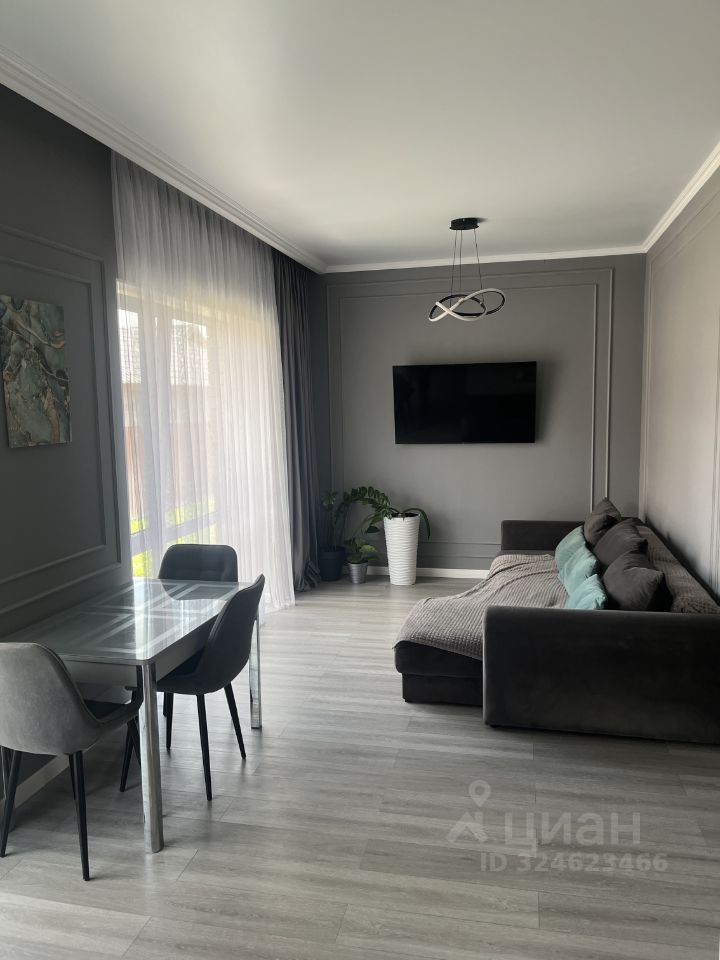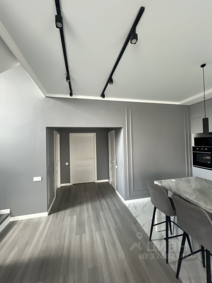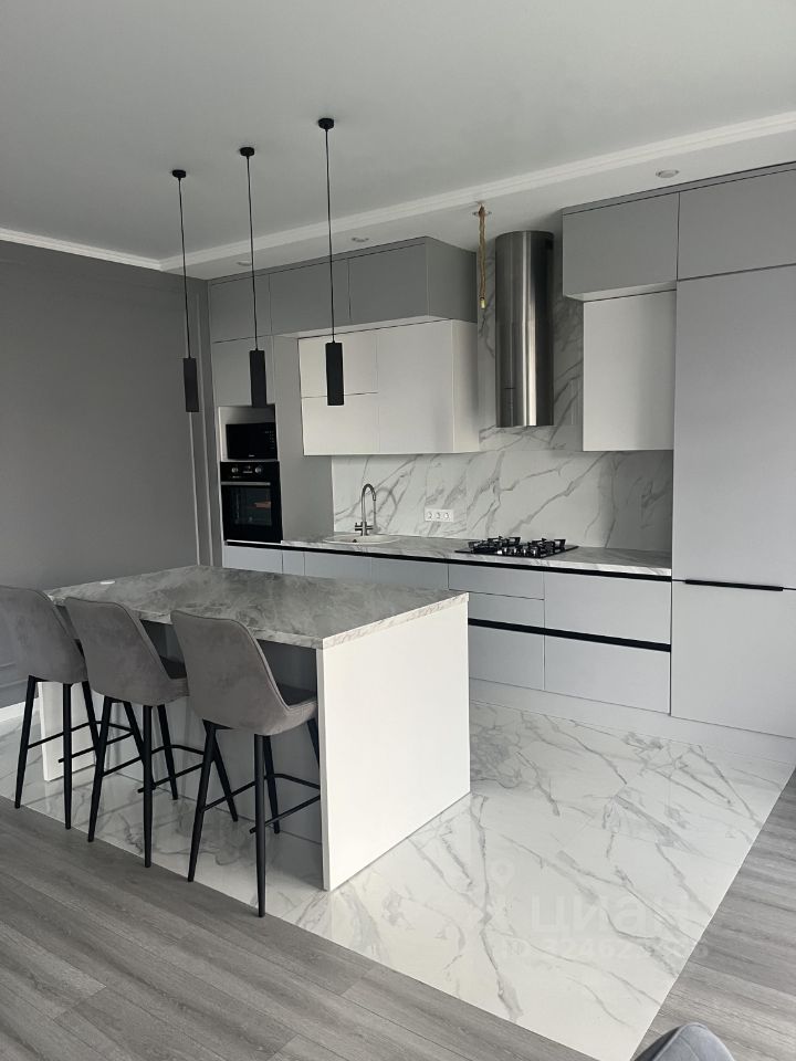Просторная кухня-гостиная с эффектным островом — ваша мечта для приема гостей.